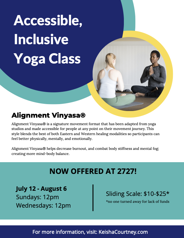 Alignment Vinyasa™ is an active, alignment-focused vinyasa class, paired to RnB and neo-soul music.