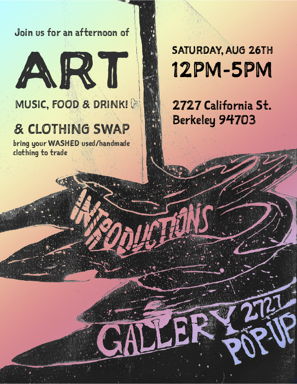 Back to All Events Introductions: Gallery2727 Pop-up Saturday, August 26, 2023 1:00 PM 9:00 PM Google Calendar ICS